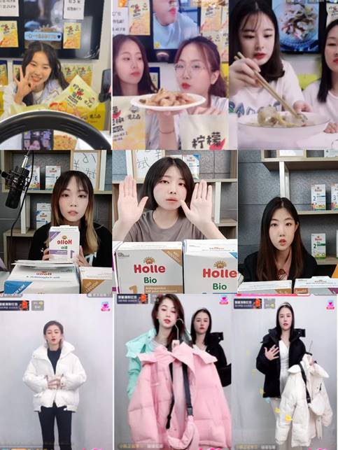 通过课程实训教学,选拔优秀应用人才,带领学生成立创业团队,与企业对接签订协议,开展电子商务运营推广等项目课题,不仅能够丰富授课内容与案例,同时也为企业打造微信、微博、短视频、淘宝、电商直播等多种宣传方案,如下图所示,学生参与黄上卤无骨鸡爪、瑞士泓乐奶粉、云尚汉派女装等项目的直播实践,学生通过帮助主播喊话、运用饥饿营销模式后,直播互动性不断增强。