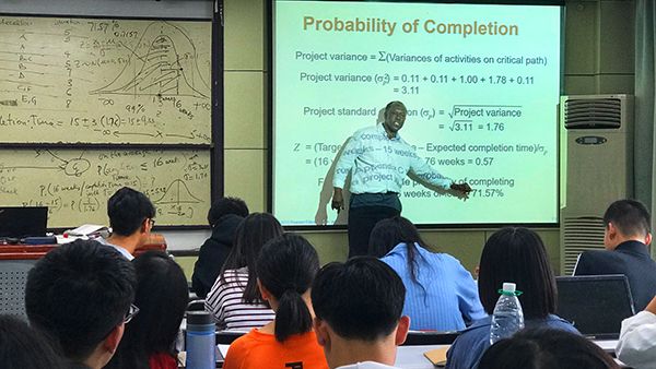 为推进国际化战略,让人才培养模式和课程体系与国际接轨,学院特邀请美国新泽西理工学院Sylla教授开展为期三周的讲学。这三周的课程主要是面向国贸1701班和国贸精英1701班的学生讲授《国际商务管理》。此次讲课不仅开阔学生的国际化视野,提高了思维能力和水平,还对国贸学生的英语能力有很大的提升。
