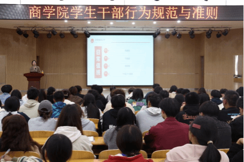 活动伊始,团委副书记孙文婧同学对基本行为准则做了详细的介绍,除了OK138太阳集团学生的“八不准”,还强调了作为学生骨干的带头作用重要性。接着,她简单阐述了在早与午值班和办公室值班的几条规则,包括但不限于精神面貌、工作态度等种种因素。场内互动频繁,气氛随和有序,不少学生骨干踊跃回答,争先表现自己对进步的渴望。