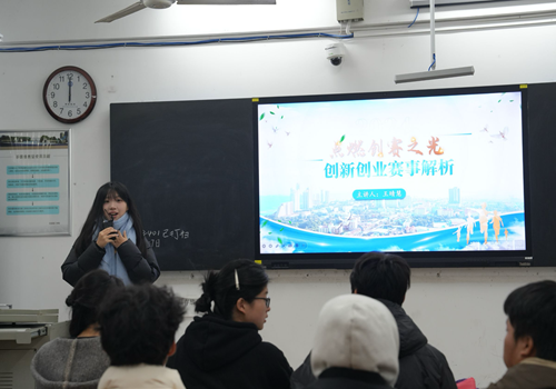 活动伊始,校青年创新创业发展中心主席王晴慧以自身的“成长轨迹”为切入点,生动地分享了创新创业赛事的重要性及其为个人成长带来的价值。她深情讲述了自己如何通过参与创新创业赛事,不仅提升了自我能力,还获得了宝贵的实践经验。