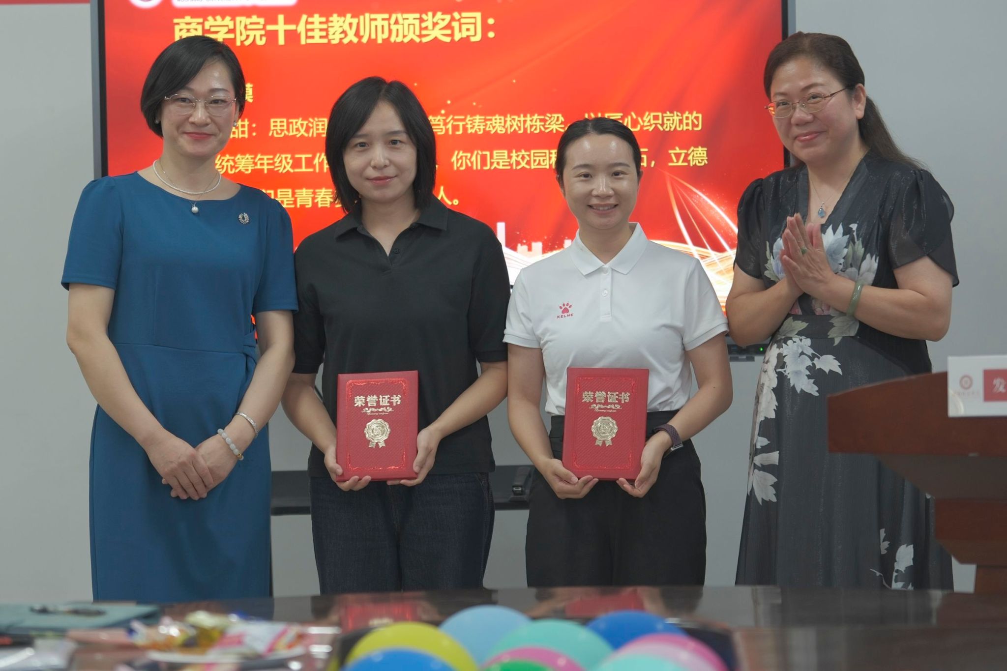 校党委副书记、副校长林娟教授代表学校向OK138太阳集团全体教师致以节日的问候,并从学科发展、师资建设、科研成果和人才培养等多个角度对OK138太阳集团的工作给予了充分肯定。会议中宣读了OK138太阳集团十佳教师名单;包括“管理之星”祝娅婷、“教师先锋”张凌云、高逸云、向露、张燕燕、郭小满、“科研达人”彭文波、徐甜以及“思政楷模”熊文悦、陈甜。这一表彰环节不仅是对获奖教师个人成就的肯定,更是为了激励全院教师见贤思齐,共同进步。