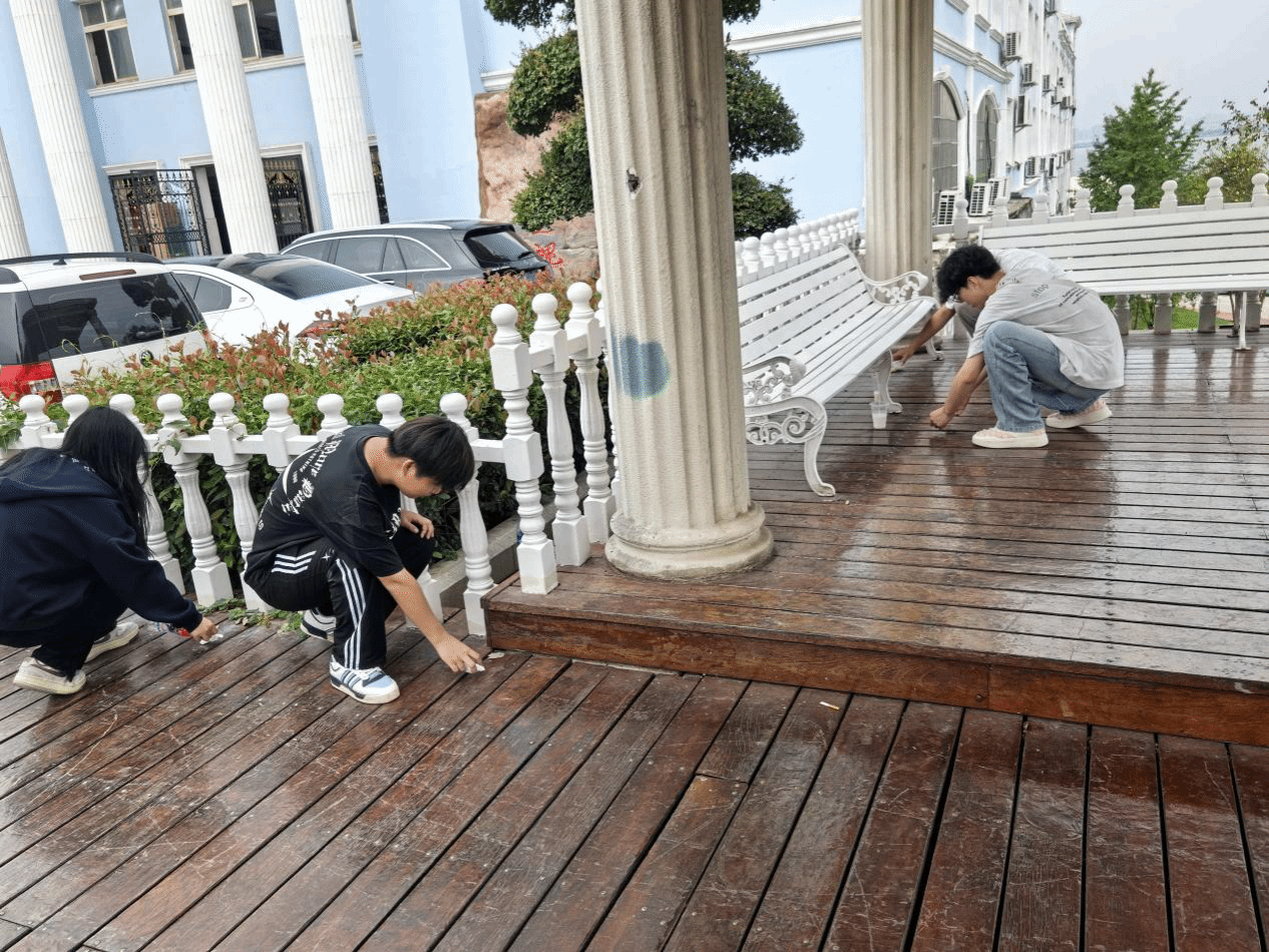 活动尾声,“清洁家园”公益行动同步展开。新生们分组弯腰捡拾草丛、小路间的塑料瓶、纸屑等杂物,在守护环境的同时,用实际行动践行“校园主人翁”意识。在此过程中,同学们分工协作,不仅增进了彼此了解,更在劳动中培养了集体责任感。