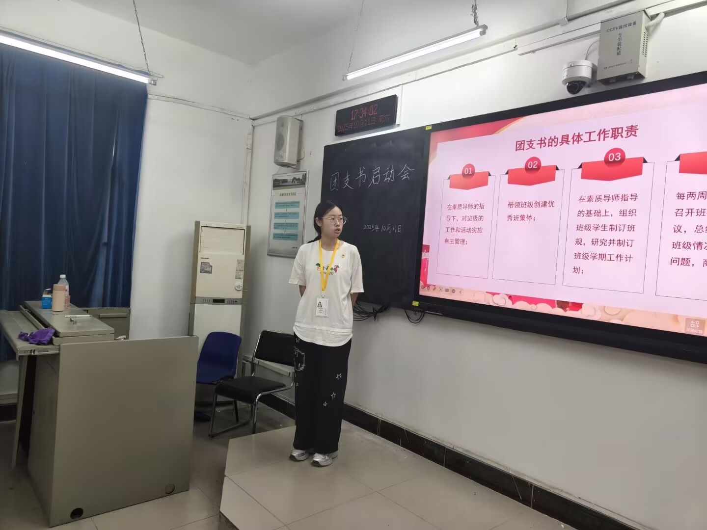 在启动会上,组织部副部长熊迎静向各团支书成员详细阐述了团支书的具体工作职责,重点讲解了晚点名与主题班会的规范流程及细节操作要点,为团支书规范开展日常工作提供了明确指引。