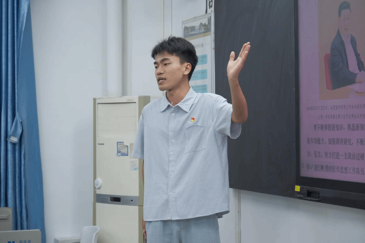 不仅如此,余俊杰同学还补充道,视觉加持对于新闻写作也尤为重要,学会抓拍是学生记者所必备的技能之一,从八方位全面锁定布局,配合演讲者与听讲者的特写镜头,充分还原现场,使新闻读者能够身临其境。在新闻写作培训最后,余俊杰副书记向大家分享优秀学生记者心法,提供优秀模板,供大家交流学习。