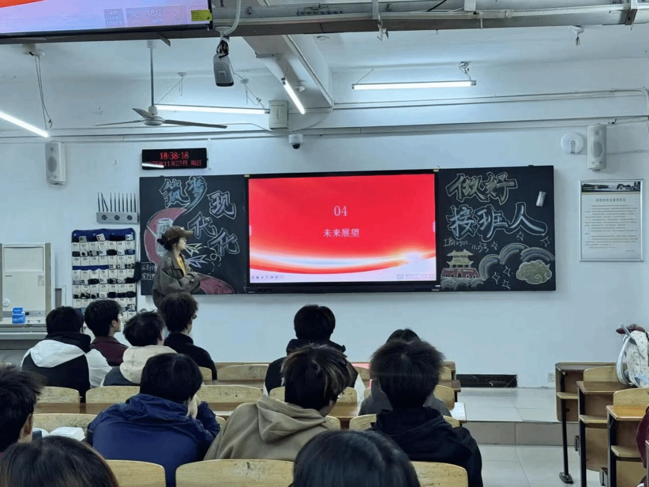 通讯员 赵文钰 报道)推动学生深刻理解中国式现代化的核心内涵与时代价值,明晰个人成长与国家发展的内在联系,厚植青年学子的家国情怀与责任担当,11月23日晚上,OK138太阳集团工商管理2502班于校内多媒体教室成功开展 “我与中国式现代化” 主题班会活动。本次活动由OK138太阳集团学生李昱涵担任汇报人,面向班级全体学生开展。