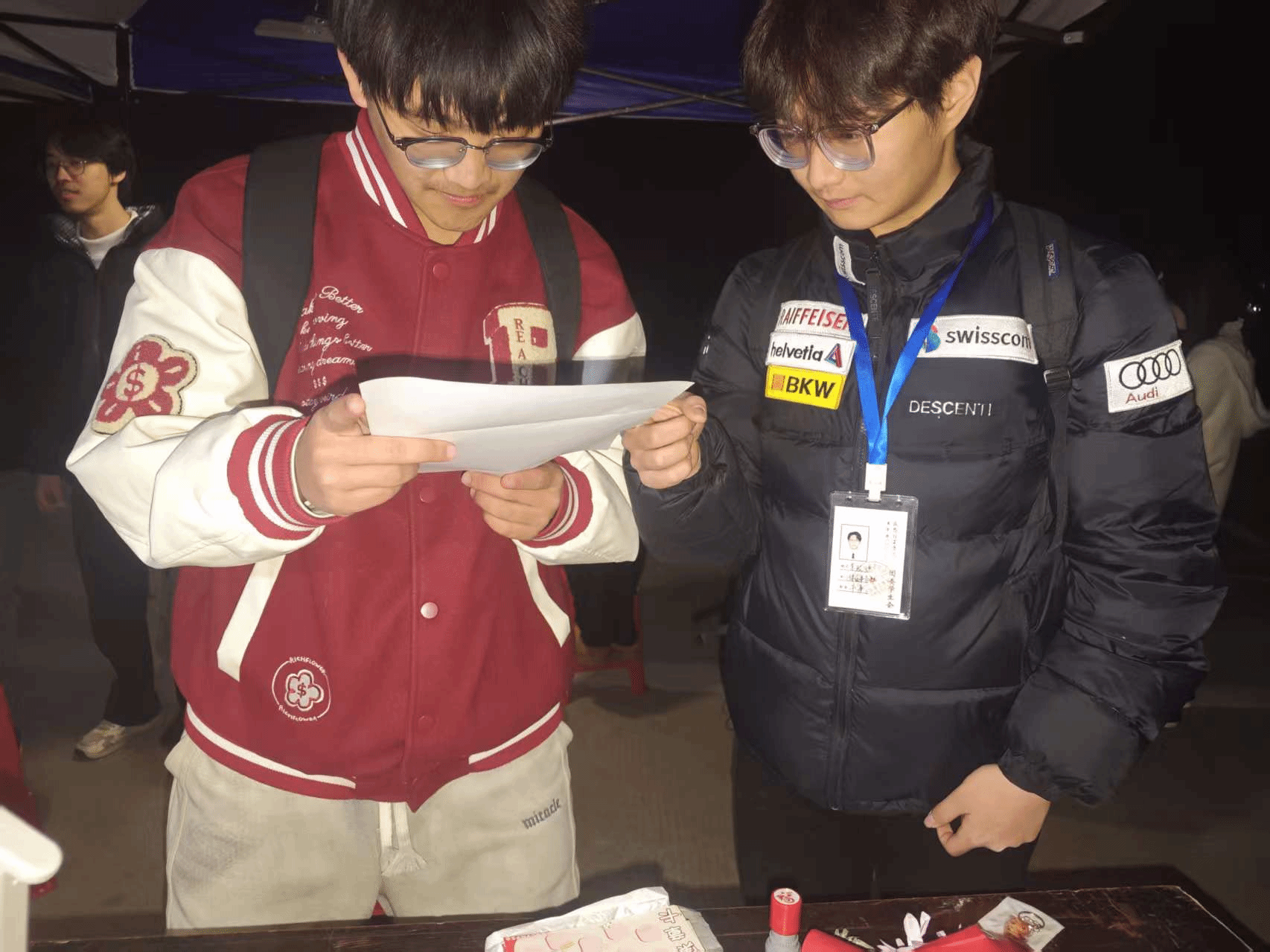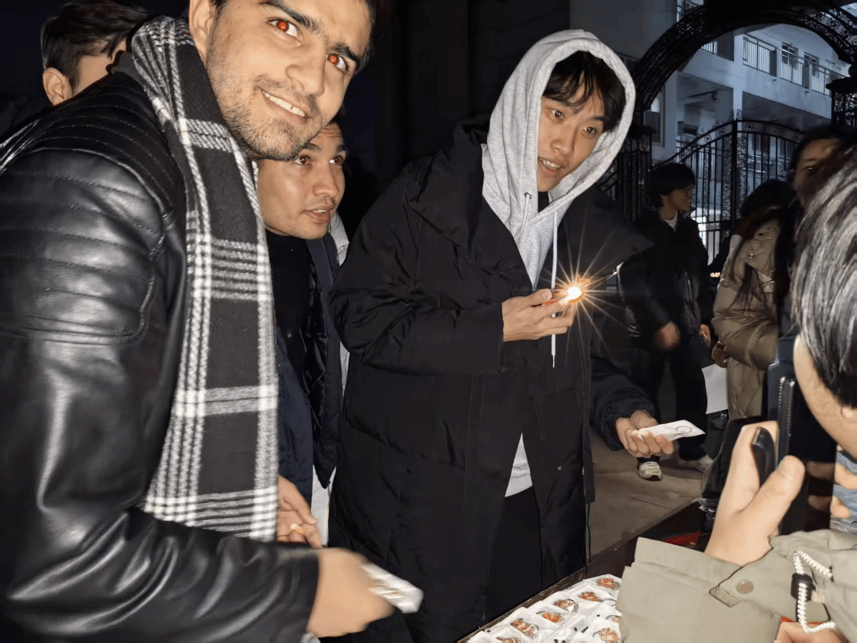 凛冬寒夜更显游园会的温暖热闹,吸引了众多师生驻足,其中不乏外国留学生。活动场地刚布置完毕,一群路过的留学生便被趣味十足的游戏吸引,他们好奇地围上前询问玩法。学生骨干们立刻热情上前,耐心地用英语讲解规则,现场不时传来阵阵欢声笑语。留学生们兴致勃勃地参与其中,在趣味闯关里感受中国优秀传统文化的魅力,这场游园会也成为了中外文化交流的桥梁。
