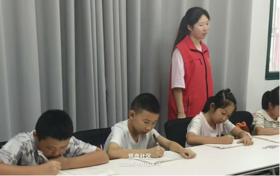 在为期数周的暑托班志愿服务中,陈妍冰始终充满热情并秉持高度的责任感。每天她总是第一个到达教室,为迎接孩子们的到来做好充分准备;课堂上,她耐心辅导学生的学习,结合自身专业知识,细致讲解难点问题,帮助他们夯实基础;当儿童在学习过程中遇到瓶颈时,她始终保持耐心,通过循序渐进的引导,直到孩子们露出豁然开朗的表情。