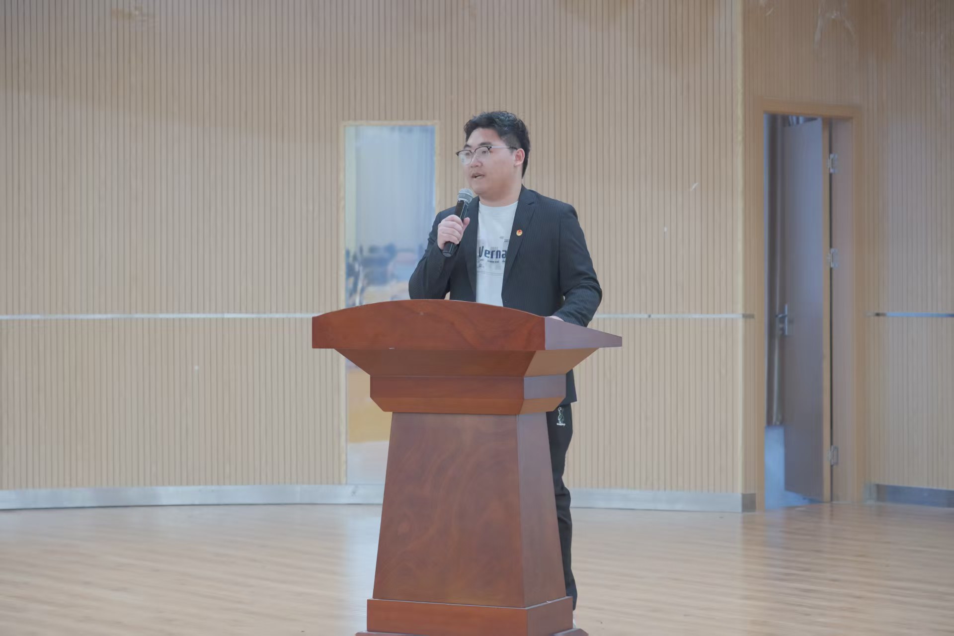 会计2401班林佰滔同学作为首位分享者,以“志愿之风”为主题,讲述自己从校园走向社区、从课堂走进街头的志愿成长历程,用生动的语言与真挚的情感,展现出商苑学子甘于奉献、勇于担当的青春底色。会计2303班余俊杰同学结合衢州南孔文化探访经历,分享将家乡文化融入实践、向大众传播传统文化魅力的故事,深深打动在场观众;旅游管理2302班李俊杰同学立足专业视角,讲述将文旅专业知识运用到地方文旅发展实践中的探索与收获。此外,投资2401班张祺同学以“笃行致远,知行合一”为主题,畅谈基层服务中的成长心路;工商管理2402班王芸菲同学用细腻的笔触描绘新春志愿服务里的温暖点滴,展现青年以行动传递温情的动人模样。五位学子的分享情真意切、催人奋进,赢得现场阵阵掌声。