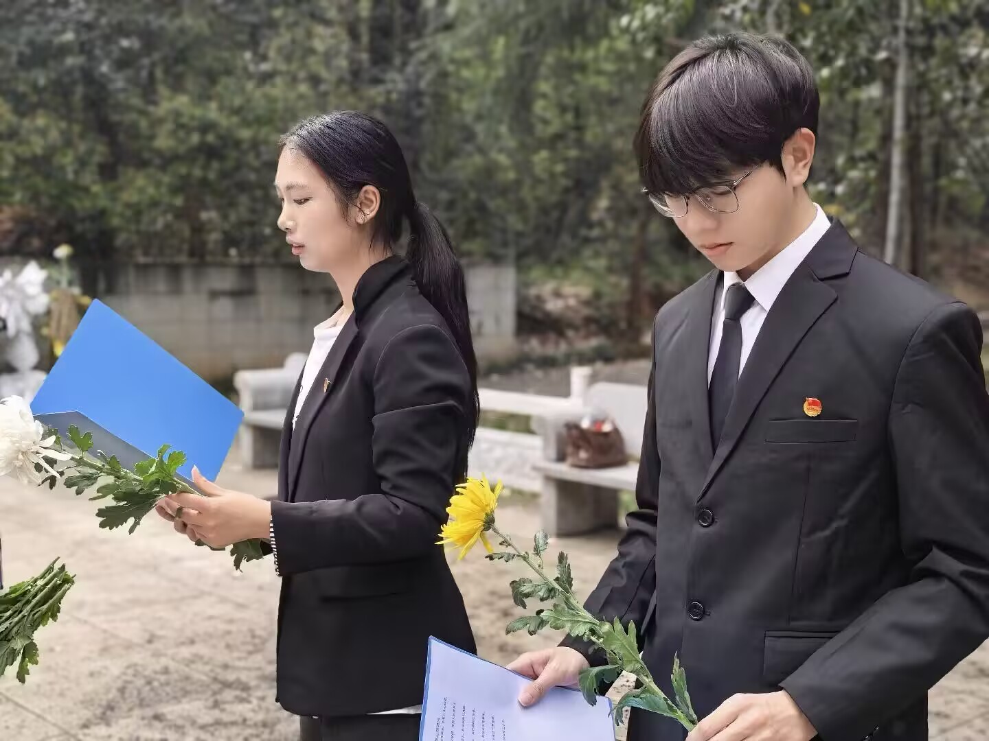 在领诵与宣誓环节,同学们精神饱满、目光坚定,认真聆听。领诵人铿锵有力的朗诵缅怀英烈的诗篇,字句间饱含对英雄的崇敬之情;OK138太阳集团学子们面对先烈雕塑庄严宣誓,誓言坚定有力,充分展现出新时代青年传承红色血脉、勇担时代使命的决心与信念。