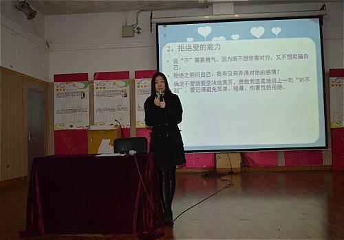 讲座刚开始,刘文雯老师以一个真实的笑话切入主题。在讲座中称自己为“姐姐”拉近了在座同学与老师之间的关系,为讲座伊始营造了一种轻松欢快的氛围。随后便提出了一个问题,爱情是什么?在场同学积极响应,说出了自己认为的爱情。随后,刘文雯老师采用了播放小短片的形式为大家简单的总结出了答案。短片结束后,她问了在座的女生们:“你想找到什么样的他?”在场同学纷纷响应,一名女生回答到:“我希望我的他是一个有责任感、孝顺、善良和上进心的人,最重要的是能给我一种仰望的感觉。”她的回答得到了刘文雯老师的赞许,刘文雯老师也对她的回答做出了相应的评价。讲座的最后一项是我来和你谈谈性,导师分别从自制、风险等方面为大家详细的普及了相关的知识。在最后她讲述了如何有效的维持爱以及优雅的告别爱,让在场的各位女生受益无穷。