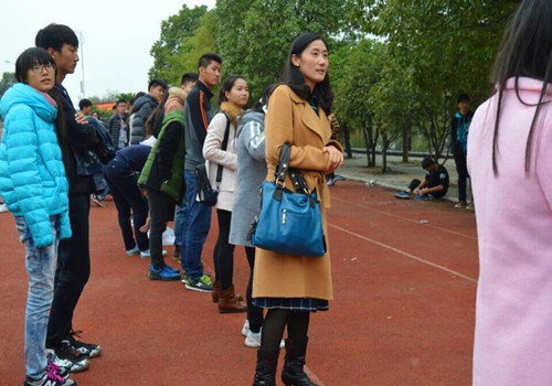 11月13日下午一点三十分,在汤逊湖畔、大操场小树林外的跳高场,女子跳高项目如期举行。在志愿者与运动员的集体努力下,现场气氛热烈,引来高琼书记的侧目与关注。