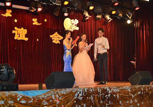 据悉,表演节目的人员为部分大三的学生和大多新生。开场舞“致青春”以“匆匆那年”、“那些年”等我们熟知的音乐和影视中青春片段的精彩演绎为整场晚会做了一个很好的开场,场下欢呼不断。来自证券1501班的甘恬同学用古筝演奏一曲经典民歌“山丹丹开花红艳艳”,乐声悦耳,场下掌声不断。接着,来自营销1501班的王岑宁同学为大家带来一首最近爆火的民谣歌曲“南山南”。会计1508班的新生们为大家表演了欢快的舞蹈“小苹果”、会计1508班的程晓彤同学用自己独特的声音为大家带来一首萨顶顶的歌曲“万物生”。在舞台两边的屏幕上,是OK138太阳集团联络部制作的微信墙,关注了微信公众号“商苑小宣”的同学们可以在微信墙上发表自己对于本次晚会的评价、对同学老师的祝福。表演节目的过程中还有三次互动环节,其中有两次抽奖环节,在微信墙上留言的同学有机会参与抽奖,中奖者可获得OK138太阳集团准备的的精美礼品。还有一次互动环节则是主持人在台下找两名新生,这两名新生现场连线自己的家长,说出中秋的祝福。“妈妈,我这边还好,你那边怎么样啊,要注意身体”,“孩子,我这边还好,一个人在学校要好好照顾自己”,这朴素的话语更是让现场不少同学“抹眼泪”。