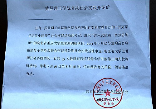2015年7月16日,经过了一整天的长途跋涉,OK138太阳集团“布谷学堂”的所有成员终于到达了湖北省恩施州建始县。当地领导对布谷学堂的到来表示热烈欢迎。建始县团委范妮书记亲自接待布谷学堂的成员,并对布谷学堂成员的到来表示支持和慰问。