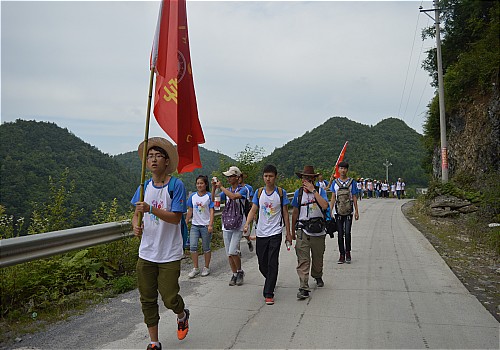 27公里山路,会不会给你一种遥遥无期的感觉呢?布谷学堂的成员们一共行走了7小时左右。“明明有车可以到达为什么不坐车反而要走好几个小时的山路呢?”布谷学堂本次带队队长汪胜堂解释道:“这是我们第三次来熊母中心小学支教,在前两次我们都是走山路,体验山区生活的艰辛,所以本次支教活动我们也要把这个习俗坚持下去。”山路崎岖难走,坑坑洼洼,队员们很不适应这样的路途,却没有一个人掉队,坚持和队伍走在一起。“虽然这是我第一次走这么多路,还是这么难走的山路,可是看到路途上优美的风景却也是蛮值得的。”布谷学堂的成员黄卓喘着粗气笑着说道。