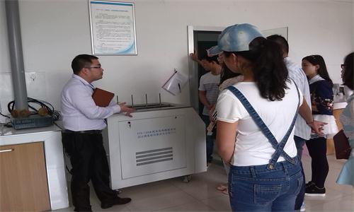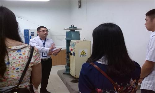 接下来,同学们走进了三源特种建材有限责任公司的实验室基地。三源公司研发部经理为大家简要介绍了混凝土的研发过程、制作流程及新产品研发等的基本情况,并带领同学们参观了实验室的研发各个环节。