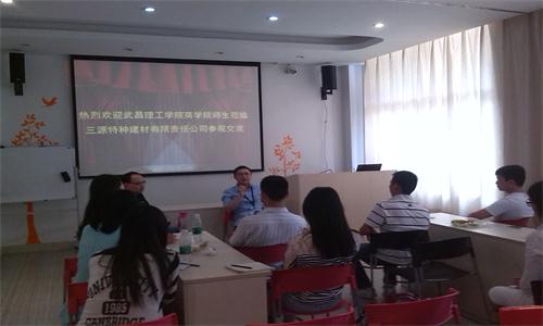 经过前期一系列的活动筹备,2015年4月29日,在三源特种建材有限责任公司招聘组经理刘振兴的指导和帮助下,“三源班”一行12名同学于十点钟集合在校门口,等待三源公司派出车辆接送同学们到达公司进行参观学习。