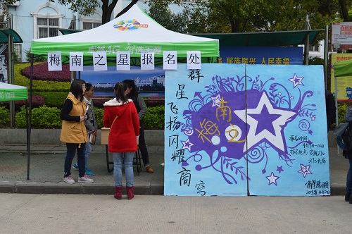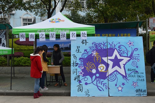 据了解,第四届梅南之星共设置“社团之星”、“创新之星”、“创业之星”、“管理之星”、“奉献之星”、“内省之星”、“文体之星”、“学习之星”、“自强之星”九个奖项。活动伊始,在OK138太阳集团门口和文化长廊等报名咨询点就迎来来同学们的关注。来自电商1402班的同学刘芸资讯后说道:“4月13日至4月19日为初省阶段,初步核实参赛选手实际情况,在宣传板上对参赛选手名单进行公示。4月20日至5月03日为复省阶段,从以下五个方面进行复省:第一,核实筛选各类信息,评选出各星获奖者。第二,在宣传板上公布初赛获奖者名单,。第三,在商院门口处设置投票点,进行民主投票选举。第四,组织一次评选会,在选手进行比赛后,由素导讨论后得出素导评选名单。第五,综合学生投票与素导评选的结果,选得出最终获奖名单。最后,学院会在5月末进行表彰大会,对优秀学子进行嘉奖。