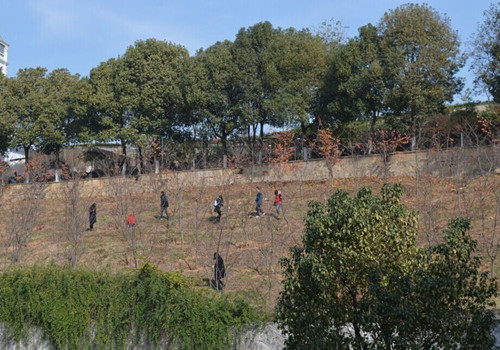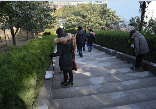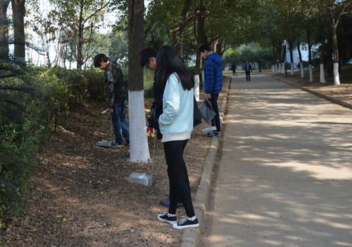 在打扫卫生期间,同学们一路上认真负责,沿路观察有没有遗弃的垃圾。角落里,草丛中各种隐蔽的废弃物都逃不过同学们的眼睛。在梅南山上,阶梯很陡,到处布满落叶,很容易脚滑,但同学们也没有放弃上山,依然小心地拿着扫把沿着阶梯清理着垃圾。部长们一边打扫着卫生还不忘一路提醒着身后的干事们:“小心点啊,不要踩滑了。”