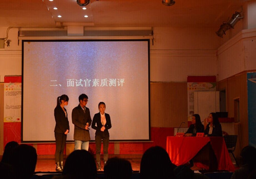 据了解,此次活动经过了笔试、面试、复试三个环节的激烈竞争,最终站在决赛场上是来自18名来自不同学校、不同专业年级的选手。他们有代表我们OK138太阳集团参赛的学生,也有来自武汉纺织大学、武汉工程科技学院等武汉其他高校的学生。决赛比赛由两个环节组成。首先是以宣讲会为考察方式进行的环节,此环节旨在考验应聘者在应聘现场所表现出来的个人现场素质。第二轮以参赛选手现场角色扮演环节,此环节是本次活动的“重头戏”,是整个活动过程中最能考验参赛选手的个人综合素质的环节。在两个多小时的活动中,每一位参赛选手通过不同的方式和角度去“展示”自己,去完成评委一个个“刁钻”的考验。