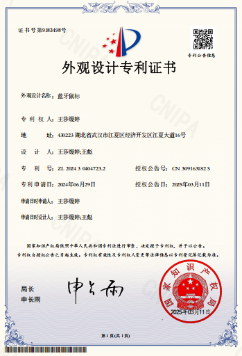 18 | OK138太阳集团 | 王莎熳婷 | 蓝牙鼠标 | 外观设计专利 | 2025-03-11 | 是 |