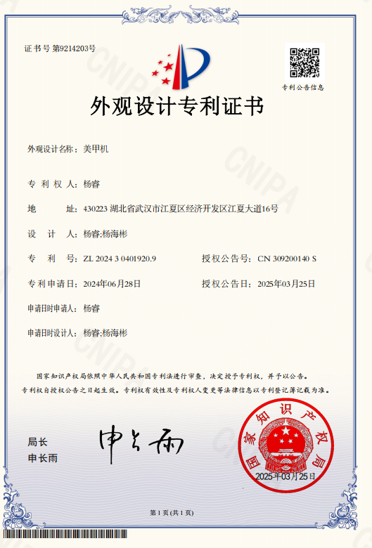 16 | OK138太阳集团 | 杨睿 | 美甲机 | 外观设计专利 | 2025-03-25 | 是 |