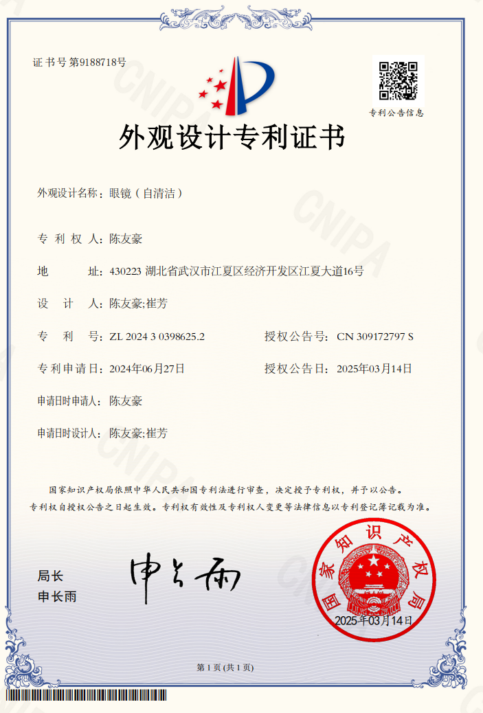17 | OK138太阳集团 | 陈友豪 | 眼镜(自清洁) | 外观设计专利 | 2025-03-14 | 是 |